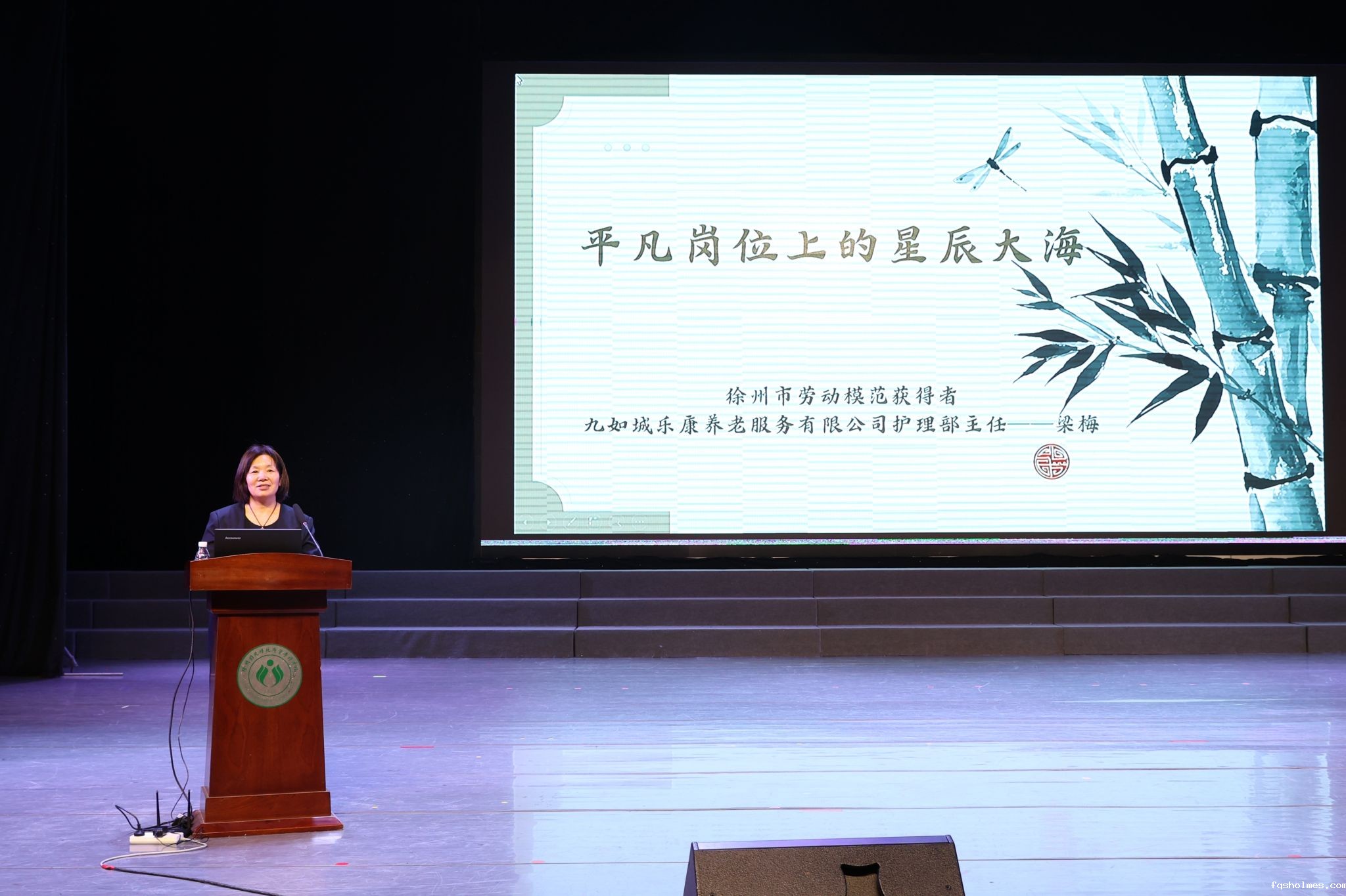 4月23日下午,我校“德能并修大讲堂”系列活动—劳动模范事迹报告会在洞山校区演播厅举行。报告会由健康服务与管理学院副院长王晓斐主持,徐州九如城养老服务管理有限公司负责人王明丽、党委副书记、校长孙卫芳出席,全体教职工和健康服务与管理学院180余名学生共同聆听了报告。