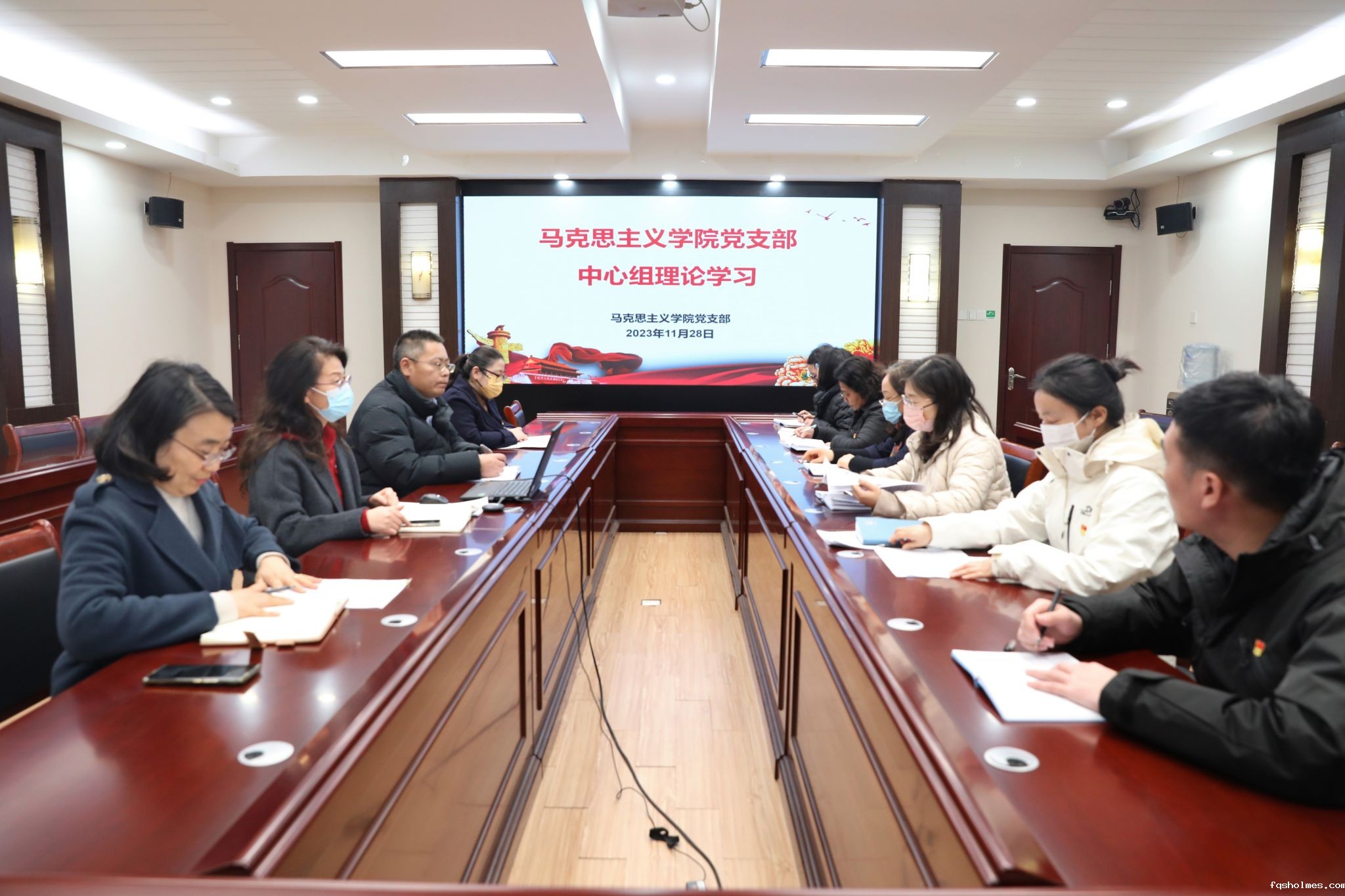 11月28日下午,马院党支部在洞山校区208会议室开展11月中心组理论学习会。校党委委员、副书记曹利群和校党委委员王震到会开展巡学旁听工作,马院党支部书记孙力主持会议。