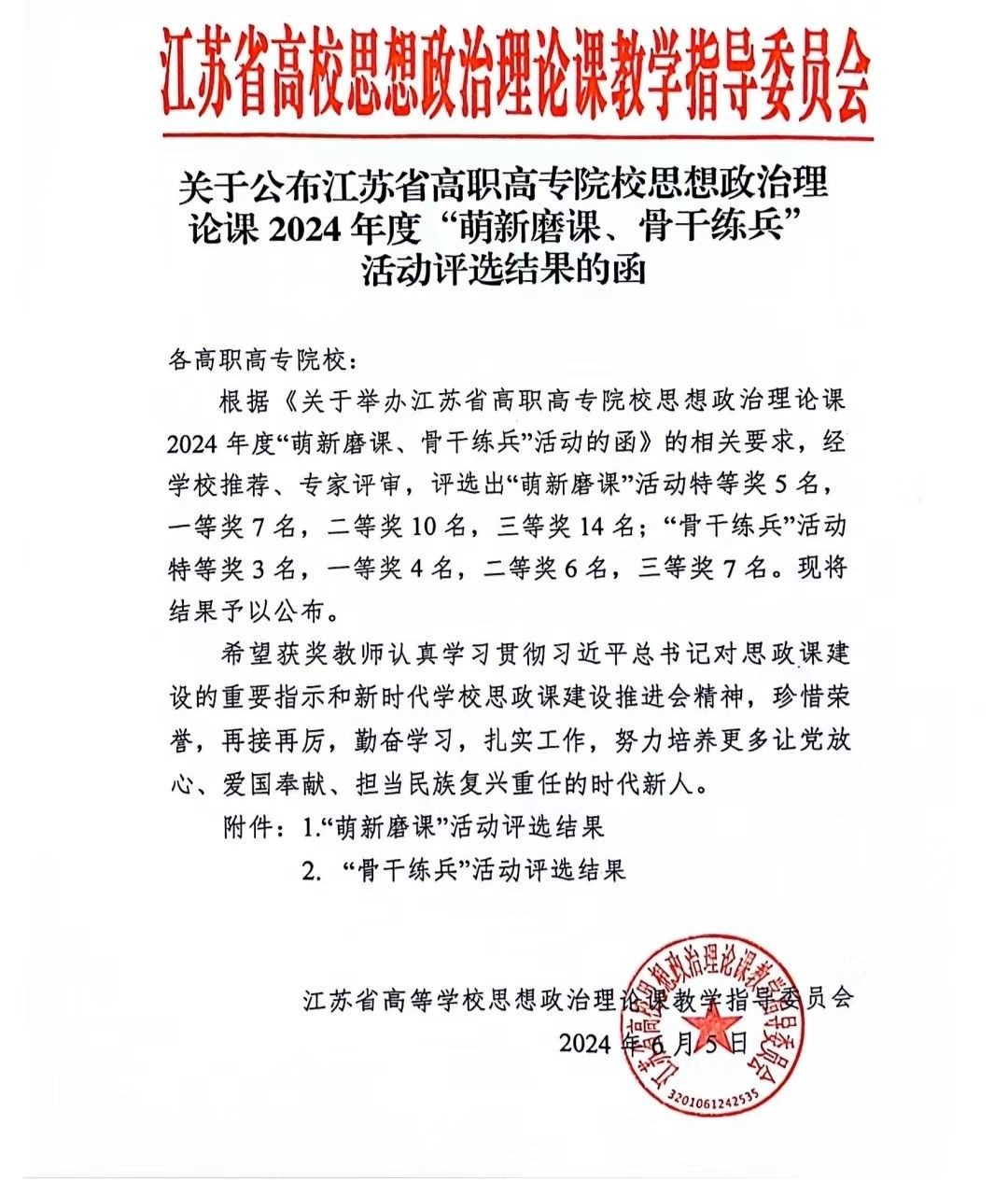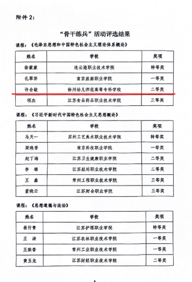 近日,江苏省高校思想政治理论课教学指导委员会公布了2024年“萌新磨课、骨干练兵“活动获奖名单。我校马克思主义学院教师许会敏获得“毛泽东思想和中国特色社会主义理论体系概论”课程“骨干练兵”组二等奖。