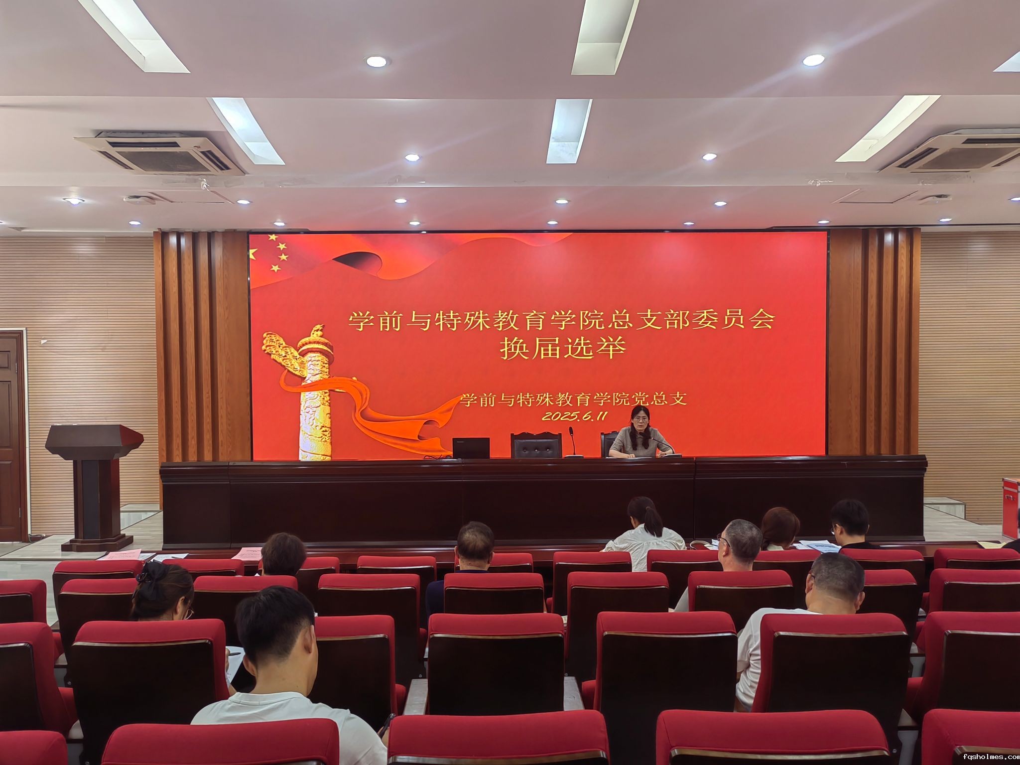 6月11日,我院党总支召开全体党员大会,顺利完成总支部委员会换届选举工作。会议由党总支副书记刘念主持,学院全体师生党员参加。