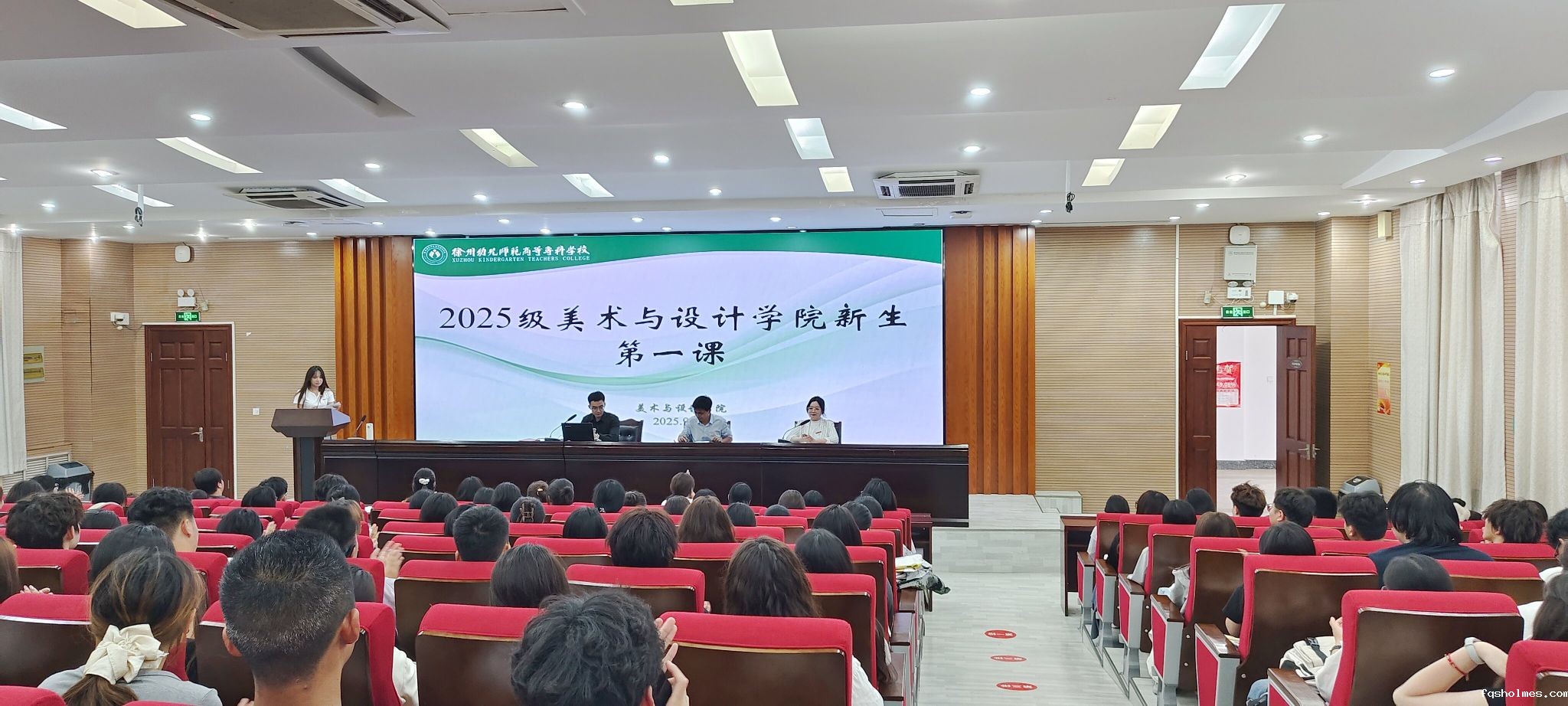 9月14日下午4时,美术与设计学院2025级全体新生班会在碧螺校区学术报告厅举行。学院学生工作负责人张枭、辅导员王霄楠、班主任谢印佳与全体新生参加会议,共同迎接大学生活的正式开始。会议由学生工作负责人张枭主持。