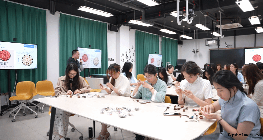活动现场设置了“望闻问切”服务区,党员志愿者协助开展健康问诊。叶老师耐心地为教职工把脉问诊,并根据个体体质差异定制养生方案。最具春日诗意的当属“本草匠心”手工制作活动。教职工与学堂学员们将杭白菊、薄荷叶等药材与皂荚、松枝、红藤、剑麻等巧妙组合,创作出雅致的中药胸针。老师们表示,“这场活动如春风化雨,既驱散了工作疲惫,更是在节气流转中读懂传统文化。”
