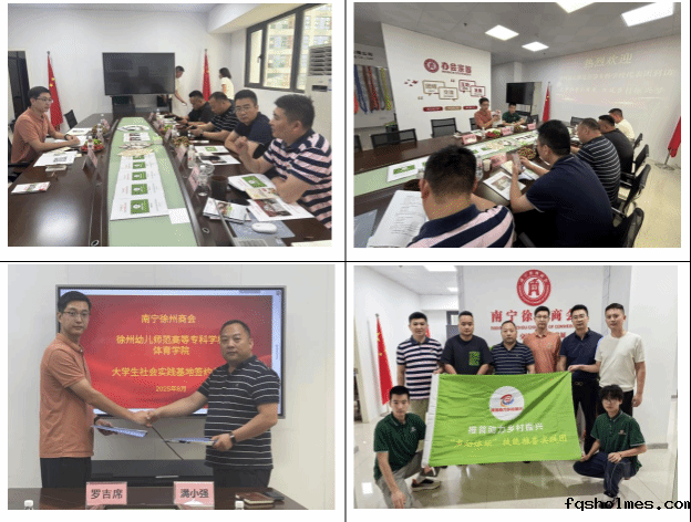 8月25日,实践团首站到访南宁徐州商会,与满小强会长、闵庆鹏执行会长等核心成员开展“推普助力乡村振兴”专题座谈。会上,体育学院团委书记罗吉席播放学校40周年高质量发展大会宣传片,介绍学校办学成果,并围绕“语言赋能乡村振兴”指出商会徐州籍成员的“乡音”传承与“普语”需求,实践团还展示“体育+推普”“乡村+推普”主题海报及宣传手册。座谈中,双方签署“大学生社会实践基地”合作协议,商会将提供实践场地,体育学院组织志愿者下乡推普,校会合作进入实质性阶段,为长期服务乡村振兴搭建平台。